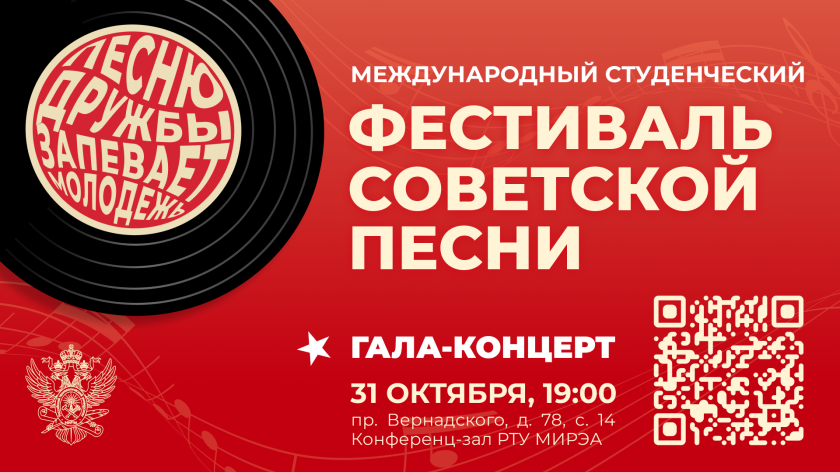 31 октября в 19:00 состоится Гала-концерт Международного студенческого фестиваля советской песни РТУ МИРЭА «Песню дружбы запевает молодёжь».