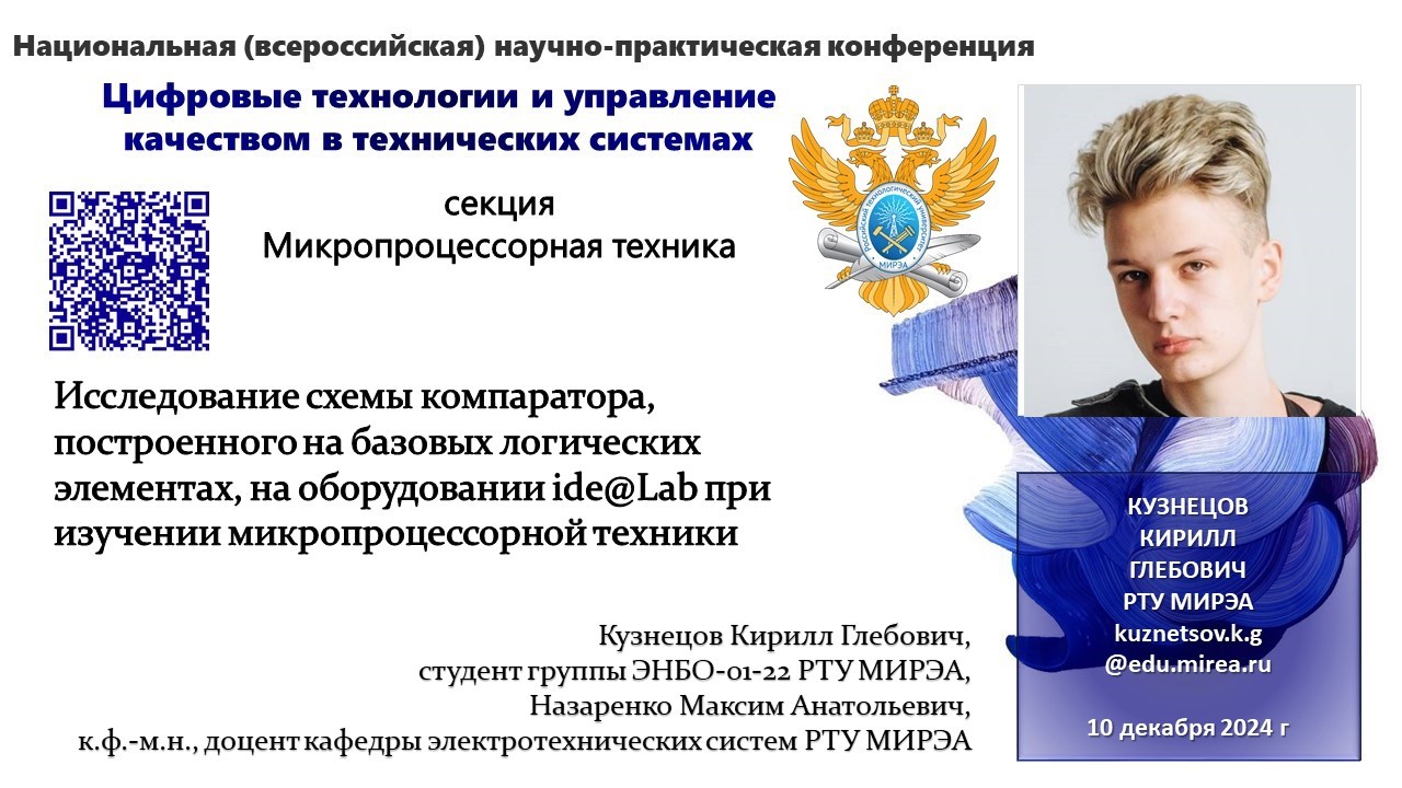 Кузнецов К.Г., Назаренко М.А. Исследование схемы компаратора, построенного на базовых логических элементах, на оборудовании ide@Lab при изучении микропроцессорной техники (объявление о выступлении 10 декабря 2024 года)