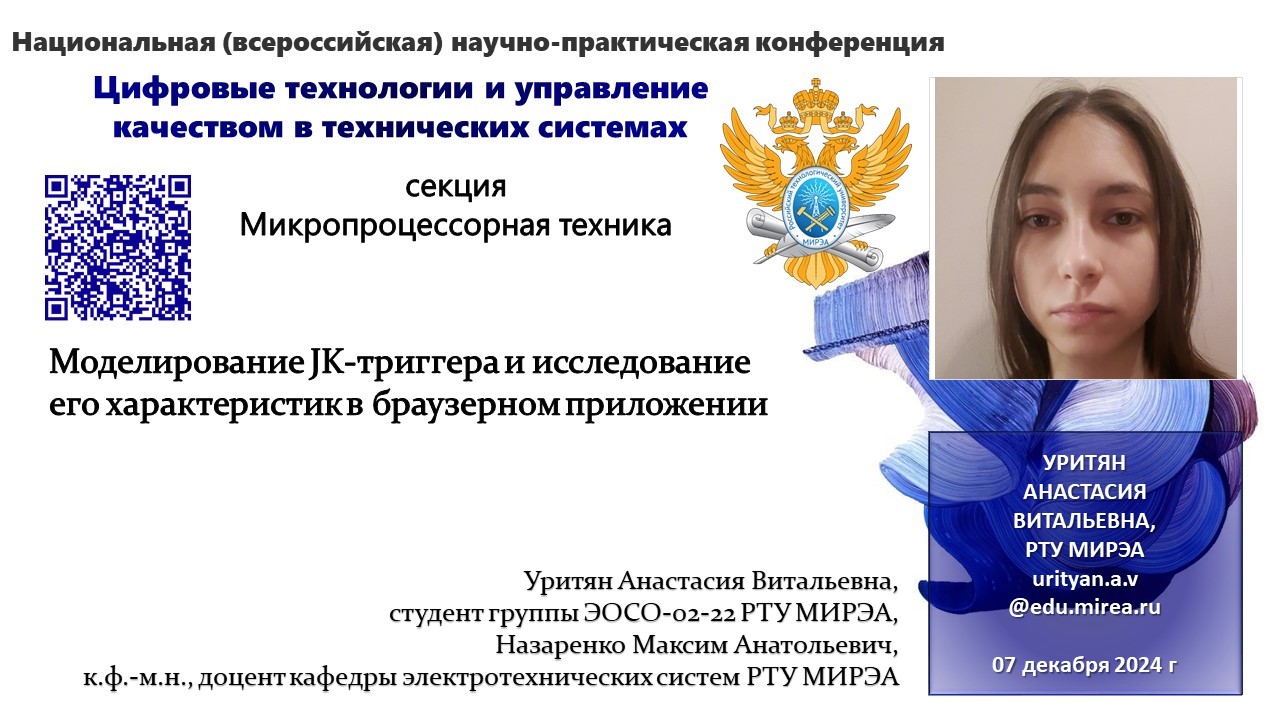 Уритян А.В., Назаренко М.А. Моделирование JK-триггера и исследование его характеристик в браузерном приложении (объявление о выступлении 07 декабря 2024 года)