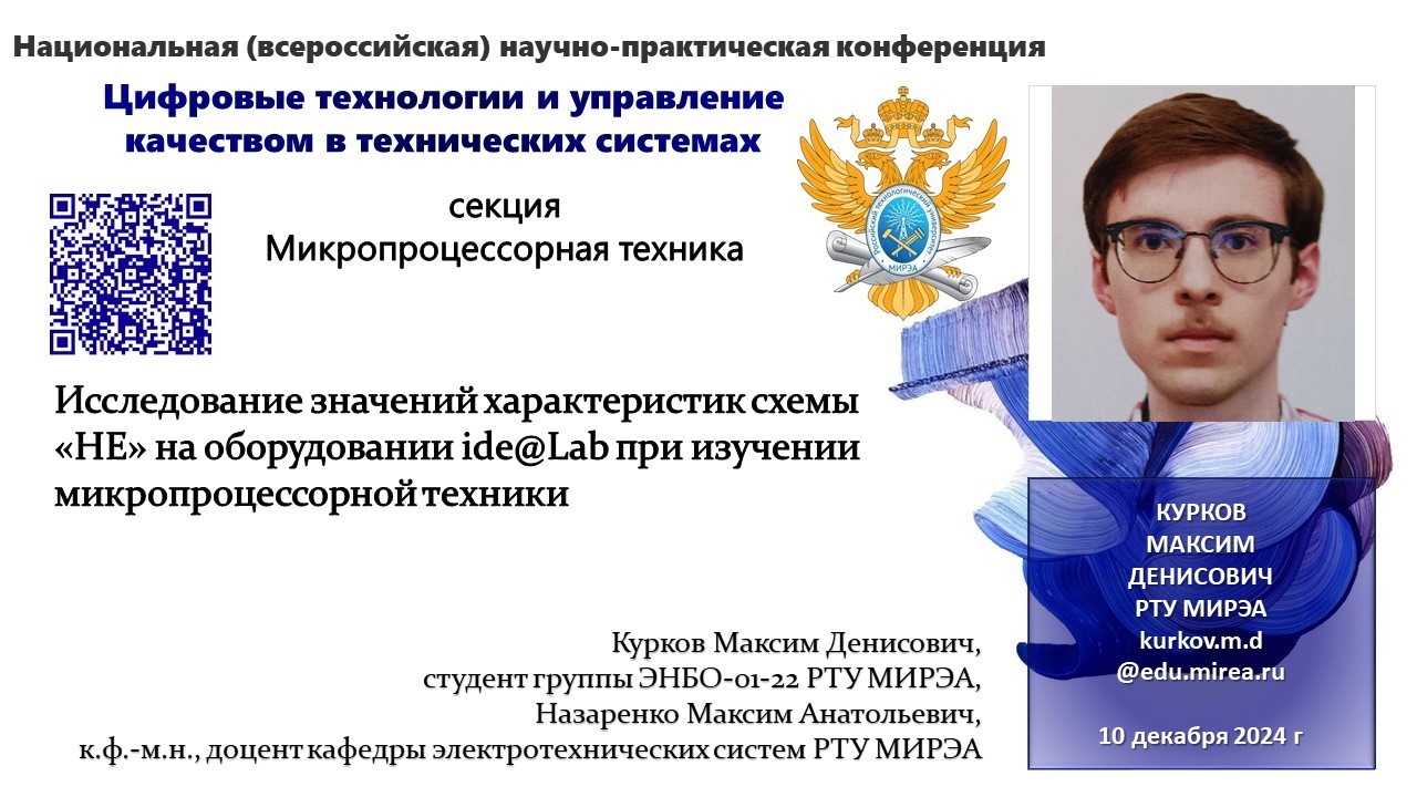 Курков М.Д., Назаренко М.А. Исследование значений характеристик схемы «НЕ» на оборудовании ide@Lab при изучении микропроцессорной техники (объявление о выступлении 10 декабря 2024 года)