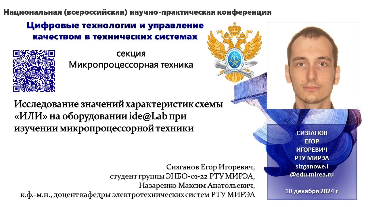 Сизганов Е.И., Назаренко М.А. Исследование значений характеристик схемы «ИЛИ» на оборудовании ide@Lab при изучении микропроцессорной техники (объявление о выступлении 10 декабря 2024 года)