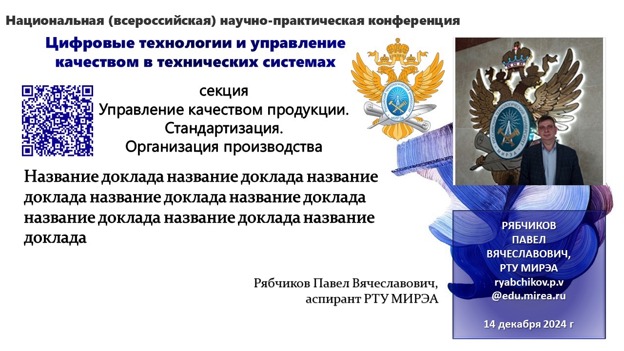Рябчиков П.В. Новый подход к обеспечению производственной составляющей надежности методом построения систем технологического обеспечения надежности изделий (объявление о выступлении 14 декабря 2024 года)