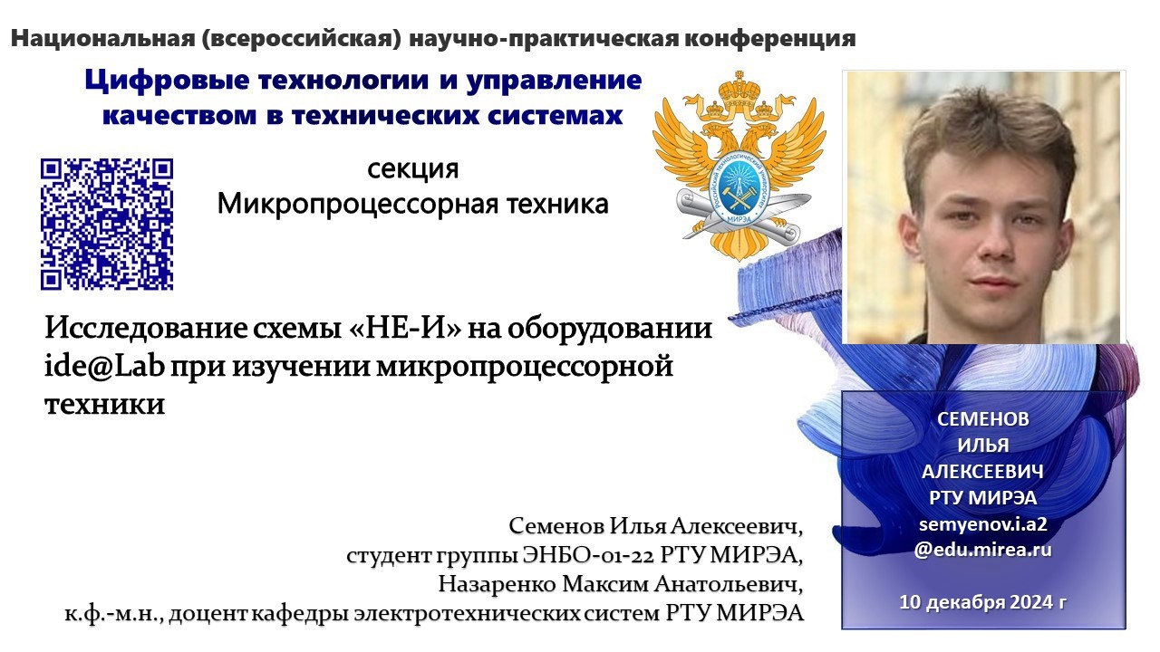 Семенов И.А., Назаренко М.А. Исследование схемы «НЕ-И» на оборудовании ide@Lab при изучении микропроцессорной техники (объявление о выступлении 10 декабря 2024 года)