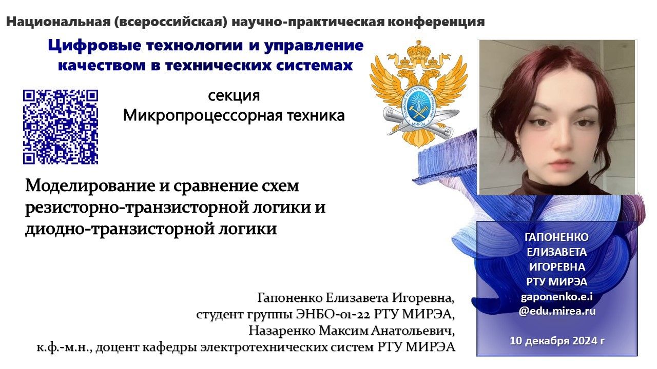 Гапоненко Е.И., Назаренко М.А. Моделирование и сравнение схем резисторно-транзисторной логики и диодно-транзисторной логики (объявление о выступлении 10 декабря 2024 года)