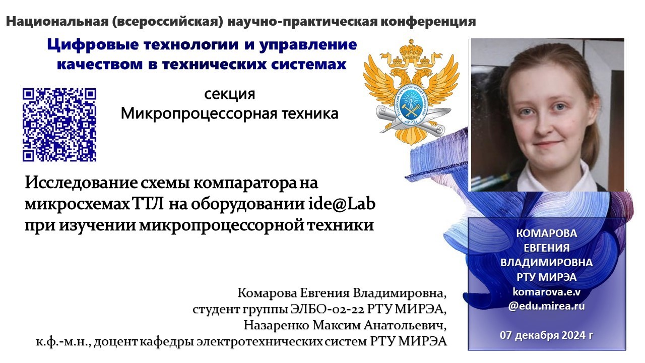 Комарова Е.В., Назаренко М.А. Исследование схемы компаратора на микросхемах ТТЛ на оборудовании ide@Lab при изучении микропроцессорной техники (объявление о выступлении 07 декабря 2024 года)