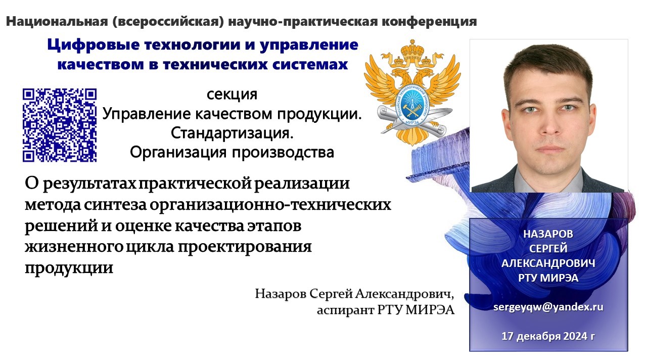 Назаров С.А. О результатах практической реализации метода синтеза организационно-технических решений и оценке качества этапов жизненного цикла проектирования продукции (объявление о выступлении 17 декабря 2024 года)