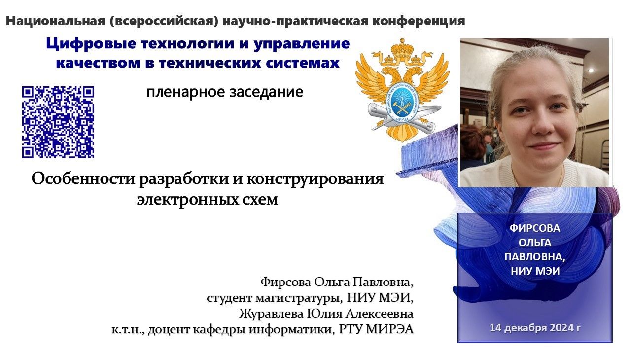Фирсова О.П., Журавлева Ю.А. Особенности разработки и конструирования электронных схем (объявление о выступлении 14 декабря 2024 года)