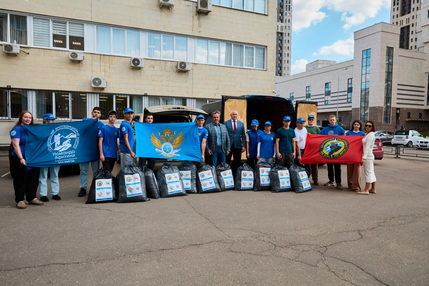 Гуманитарную помощь вместе, плечом к плечу грузят в машину студенты Максим Проценко и Дарья Храмцова, ректор РТУ МИРЭА Станислав Кудж и проректор по административно-хозяйственной работе Игорь Тарасов. Желание оказать поддержку нашим бойцам объединило всех.