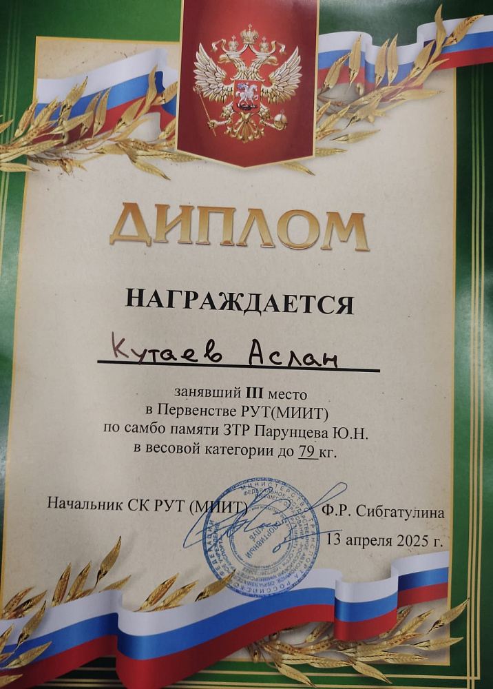 Три золотые и четыре бронзовые медали завоевала сборная РТУ МИРЭА на прошедшем 13 апреля 2025 года Первенстве РУТ МИИТ по самбо памяти Заслуженного тренера России Парунцева.Ю.Н. В соревнованиях принимали участие самбисты из пяти ВУЗов Москвы: РТУ МИРЭА, РУТ (МИИТ), НИУ МГСУ, РГУ нефти и газа (НИУ) имени И.М. Губкина, МГУСиТ.