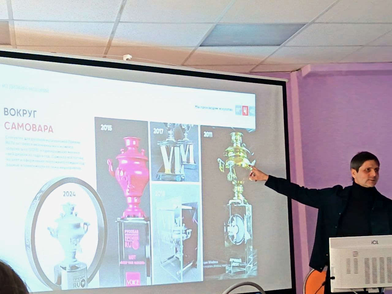 В рамках лекции спикер поделился опытом и реальной историей своей студии со студентами. Также были затронуты направления современного дизайна, использования материалов и технологий.