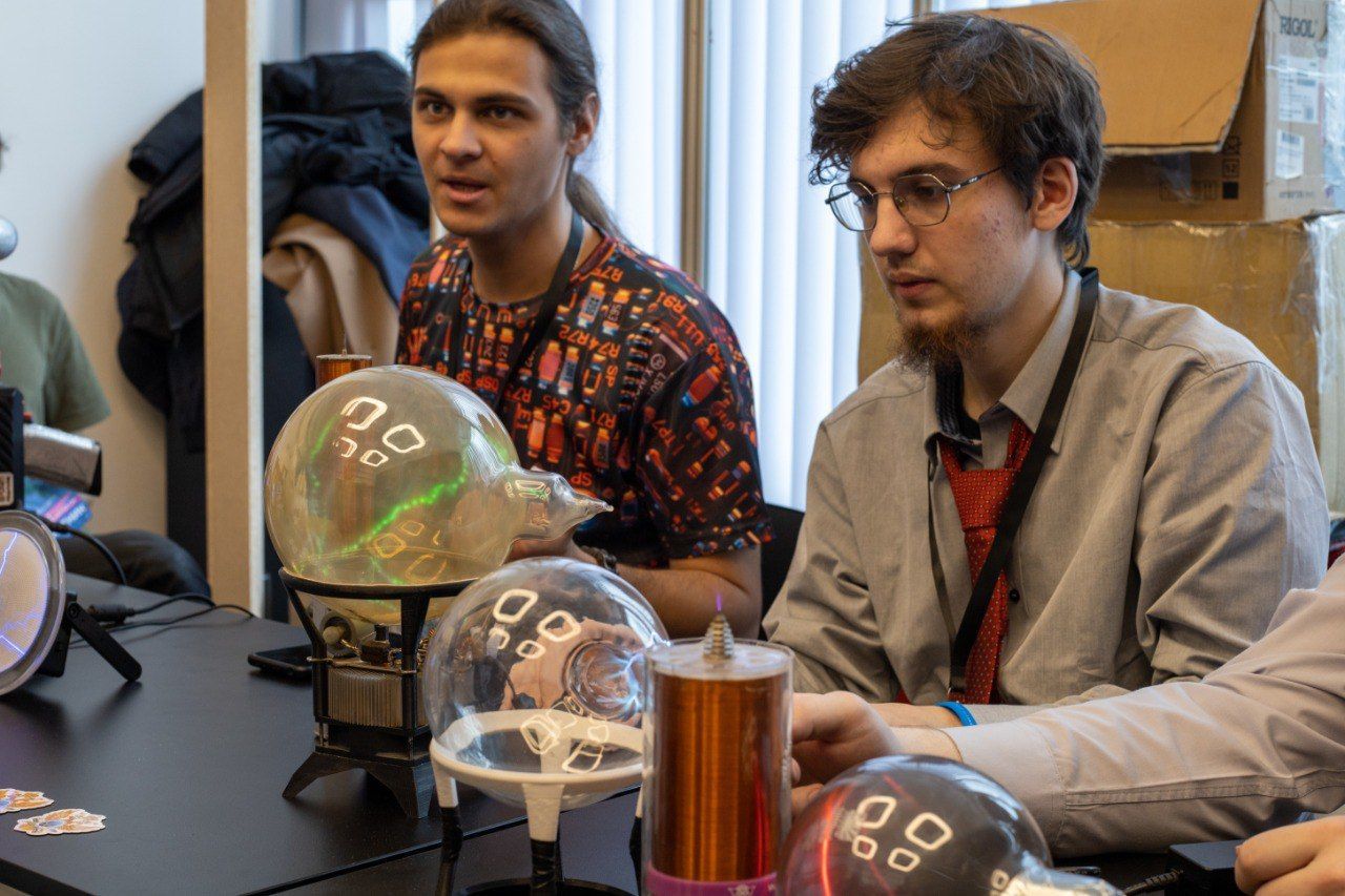 Студенческая научно-учебная лаборатория ИРИ «Радиолаб» знакомила гостей со своими разработками: катушки Тесла, левиатрон и другими.