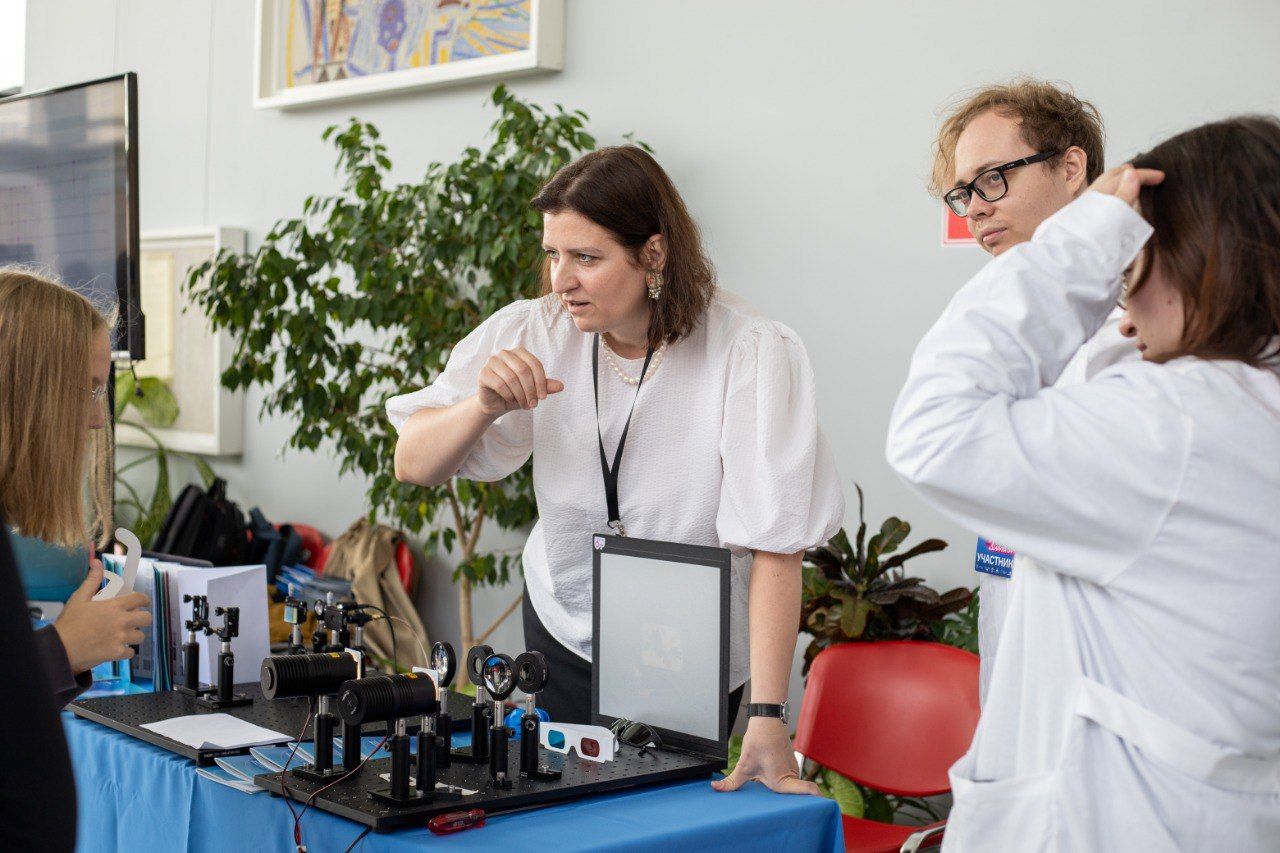 Представители кафедры оптико-электронных приборов и систем ИПТИП демонстрировали опыты по исследованию явления поляризации. На стенде кафедры компьютерного дизайна можно было с помощью VR-оборудования создать трёхмерные модели.
