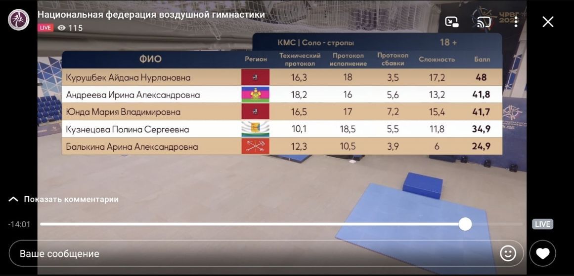 Первокурсница Института искусственного интеллекта Айдана Курушбек — чемпионка России по воздушной гимнастике!