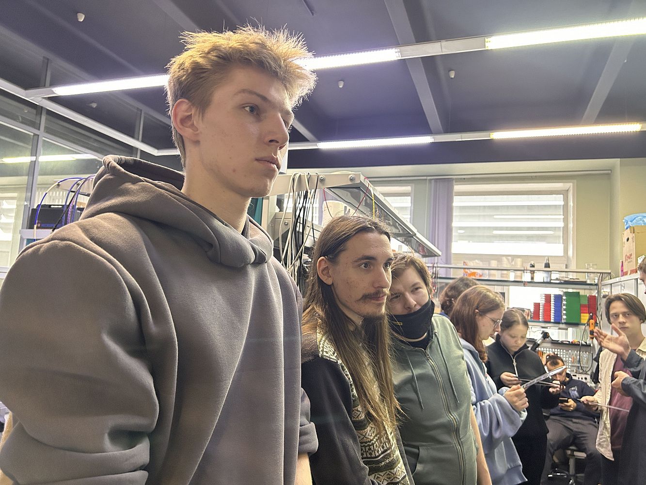 Руководитель исследовательской лаборатории провёл для студентов экскурсию по лабораториям. Продемонстрировал исследовательское оборудование, используемое для создания широкого спектра датчиков и акселерометров, по технологии 3-D сборки для SiP-интеграции.