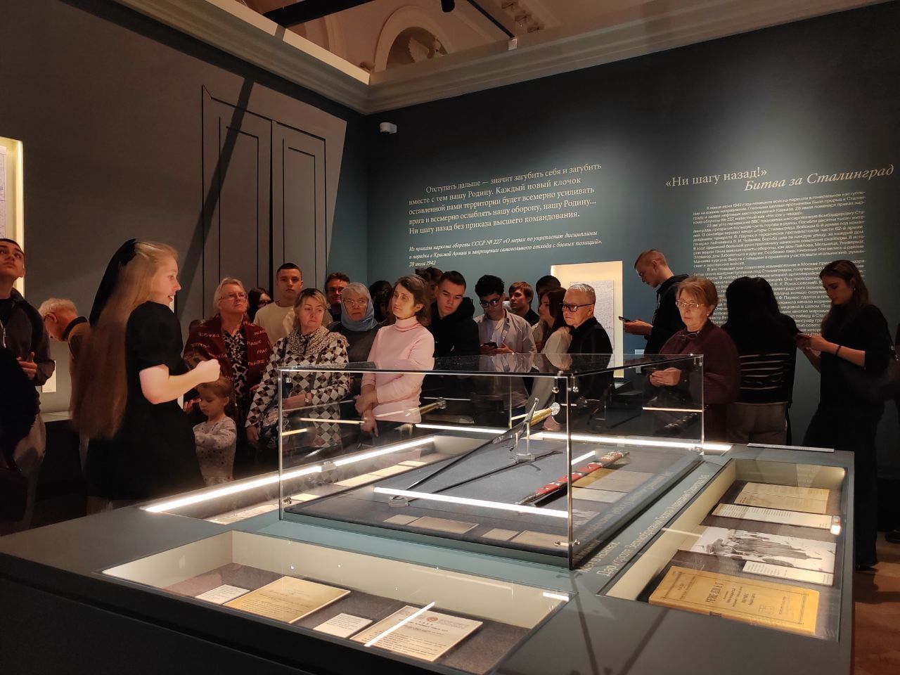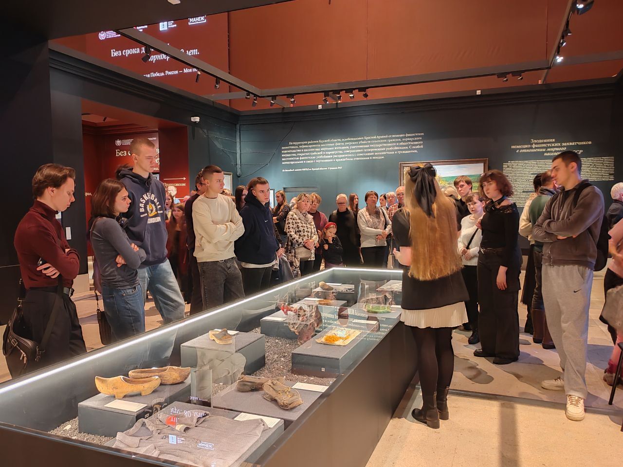Особое внимание студентов привлекли личные вещи героев (записная книжка Зои Космодемьянской, шинель снайпера Людмилы Павличенко), а также документы из раздела «Обыкновенный нацизм», раскрывающие трагедию концлагерей. Кульминацией экспозиции стало Знамя Победы, водружённое над Рейхстагом.