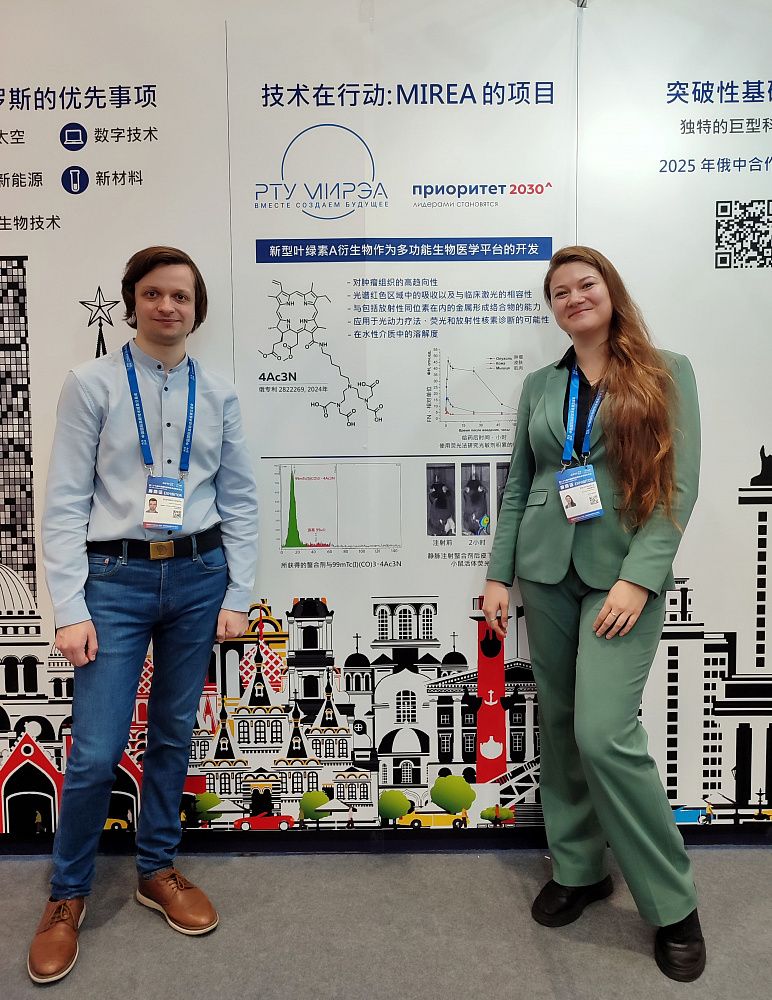 Минобрнауки России организовало на выставке объединённую экспозицию ведущих российских вузов и научно-исследовательских институтов. На стенде от РТУ МИРЭА была представлена разработка, посвящённая получению нового мультифункционального тераностического агента на основе природного хлорофилла, который потенциально может быть применён для фотодинамической терапии, флуоресцентной и радионуклидной диагностики.