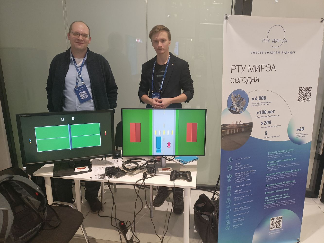 Доцент кафедры корпоративных информационных систем Института информационных технологий Пётр Николаевич Советов и студент Кирилл Сергеевич Павлов представили стендовый доклад «Брус-16: практика совместного проектирования аппаратной архитектуры и программного инструментария», рассказывающий о междисциплинарном проекте в области прикладного, системного программирования и цифровой схемотехники.
