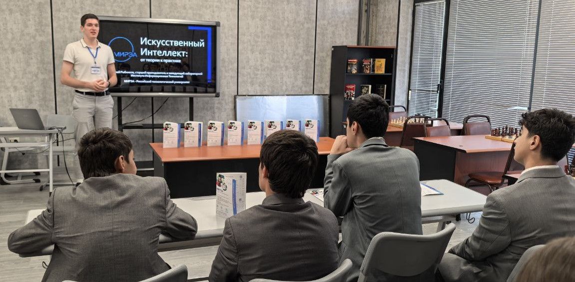 Также в дни выставочных мероприятий преподаватель Института информационных технологий Андрей Константинович Рыбников провёл для учащихся 9–11-х классов мастер-классы по искусственному интеллекту. Школьники познакомились с современными направлениями развития интеллектуальных технологий, принципами обучения нейросетей и их практическим применением в различных сферах. Мастер-класс прошёл в интерактивном формате, позволив участникам не только получить новые знания, но и почувствовать себя исследователями будущего. Самые активные участники были отмечены памятными подарками от РТУ МИРЭА.