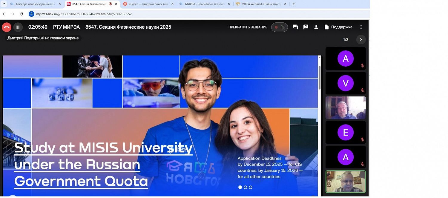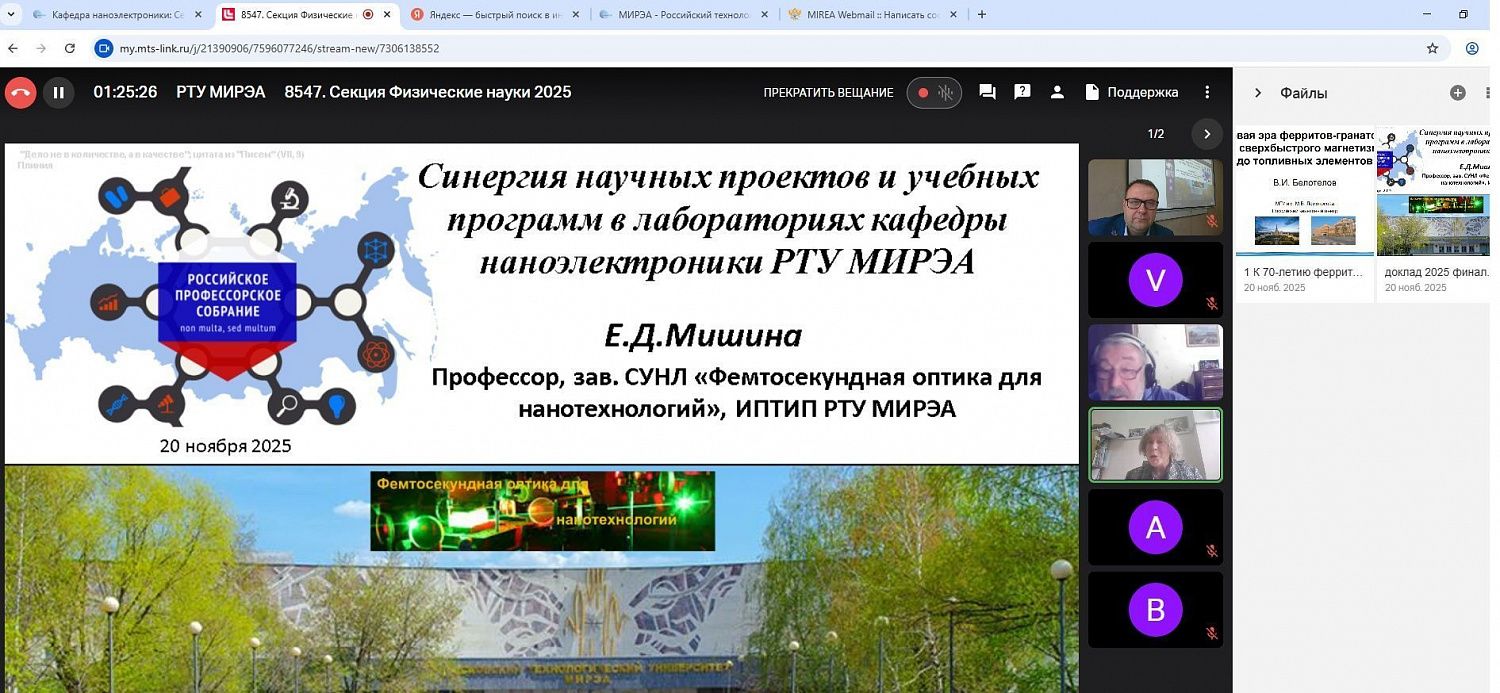 Секция «Физические науки. Материаловедение и нанотехнологии» VIII профессорского форума «Наука и образование: стратегии развития» прошла 20 ноября на площадке РТУ МИРЭА в онлайн-формате.