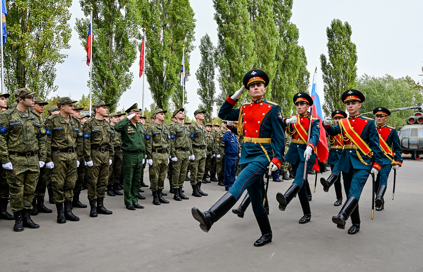 Церемония включала торжественный вынос флагов и знамён, зачитывание приказа Министра обороны Российской Федерации, вручение погон с ответом «Служу России!», прощание с флагом ВУЦ под барабанный бой и исполнение гимна России.