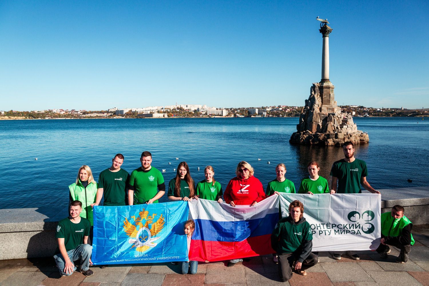30 октября в день начала героического освобождения Севастополя добровольцы РТУ МИРЭА стали свидетелями торжественной и волнующей церемонии — смены почётного караула у Вечного огня. Участники автопробега почтили память героев Великой Отечественной войны вместе с десятками жителей освобождённого Севастополя. Эта минута молчания и всеобщего почтения стала центральным моментом поездки, напомнив о великом подвиге и несгибаемой стойкости защитников Отечества.