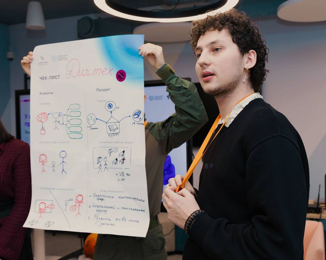 Особое внимание в рамках интенсива уделялось практическому применению знаний. Студенты работали над разработкой собственных проектов, сразу воплощая теоретические модули в реальные бизнес-решения. Кульминацией мероприятия стала питч-сессия, где будущие предприниматели, включая Артёма Шадрина, представили свои инновационные идеи авторитетному экспертному жюри.