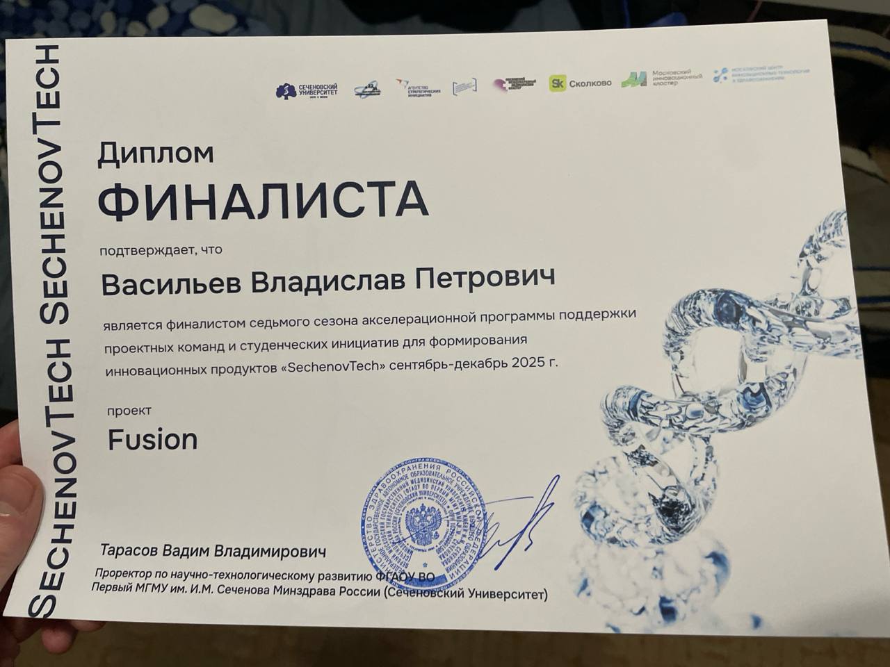 Студент 4-го курса по направлению 27.03.05 «Инноватика» кафедры управления инновациями Владислав Васильев стал финалистом седьмого сезона акселерационной программы SechenovTech — базовой программы поддержки проектных команд и студенческих инициатив в сфере biomedtech, реализуемой Сеченовским университетом.