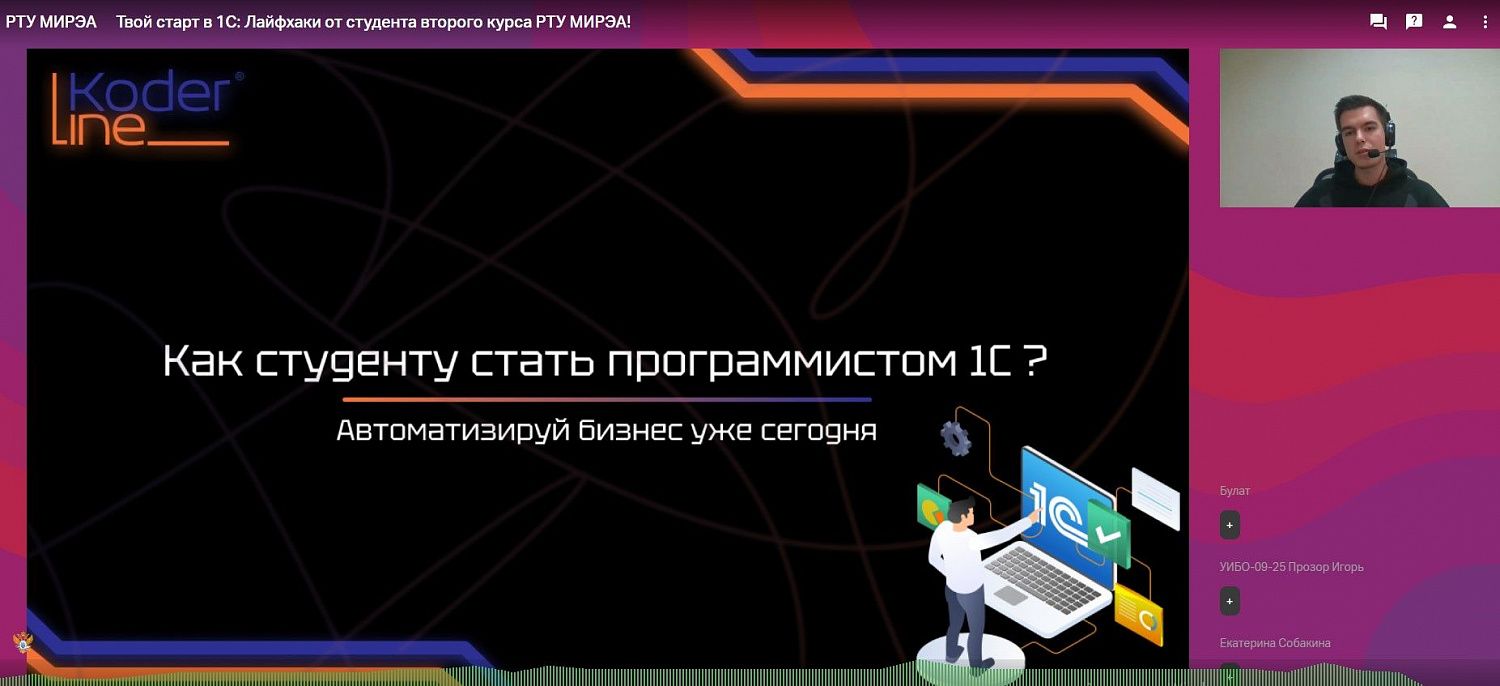 Мероприятие «Твой старт в 1С: лайфхаки от студента» было организовано для мотивации и практической ориентации начинающих специалистов.