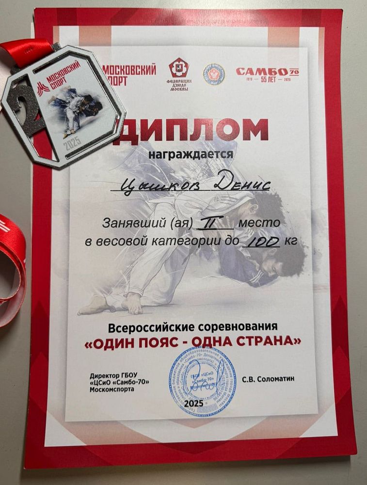 3-4 октября в Центре спорта и образования «Самбо-70» Департамента спорта города Москвы состоялся Всероссийский турнир по дзюдо среди юниоров «Один пояс — одна страна». В весовой категории 100 кг серебряную медаль завоевал студент РТУ МИРЭА Денис Цышков (группа УИБО-08-24).