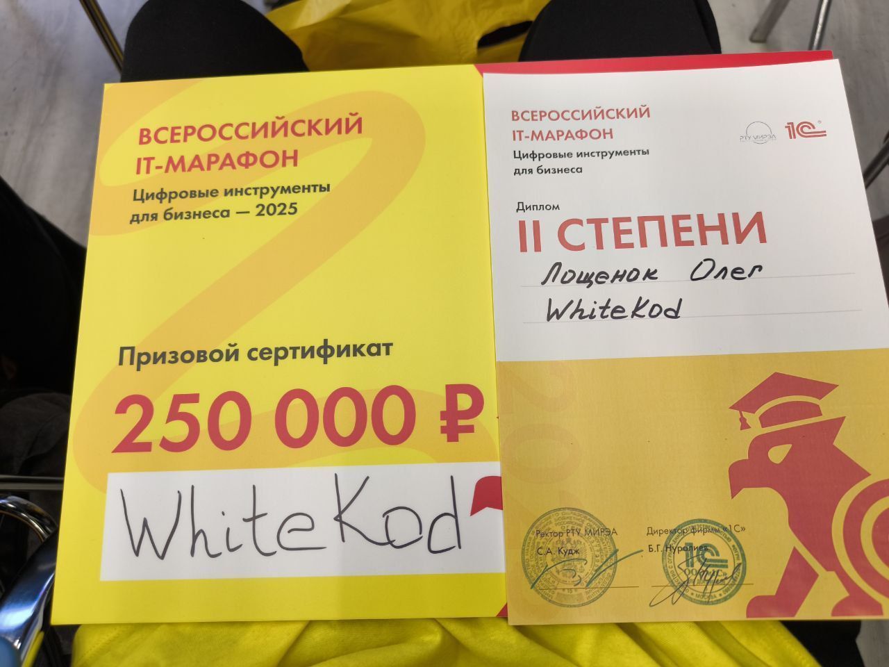 В базовом треке команда WhiteKod заняла второе место. В составе команды — Олег Лощенок, Владислав Куропатин, Махмуд Адиев, Наталья Панова — успешно проявили себя на всех этапах марафона, продемонстрировав глубокое понимание цифровых инструментов и умение работать в команде.