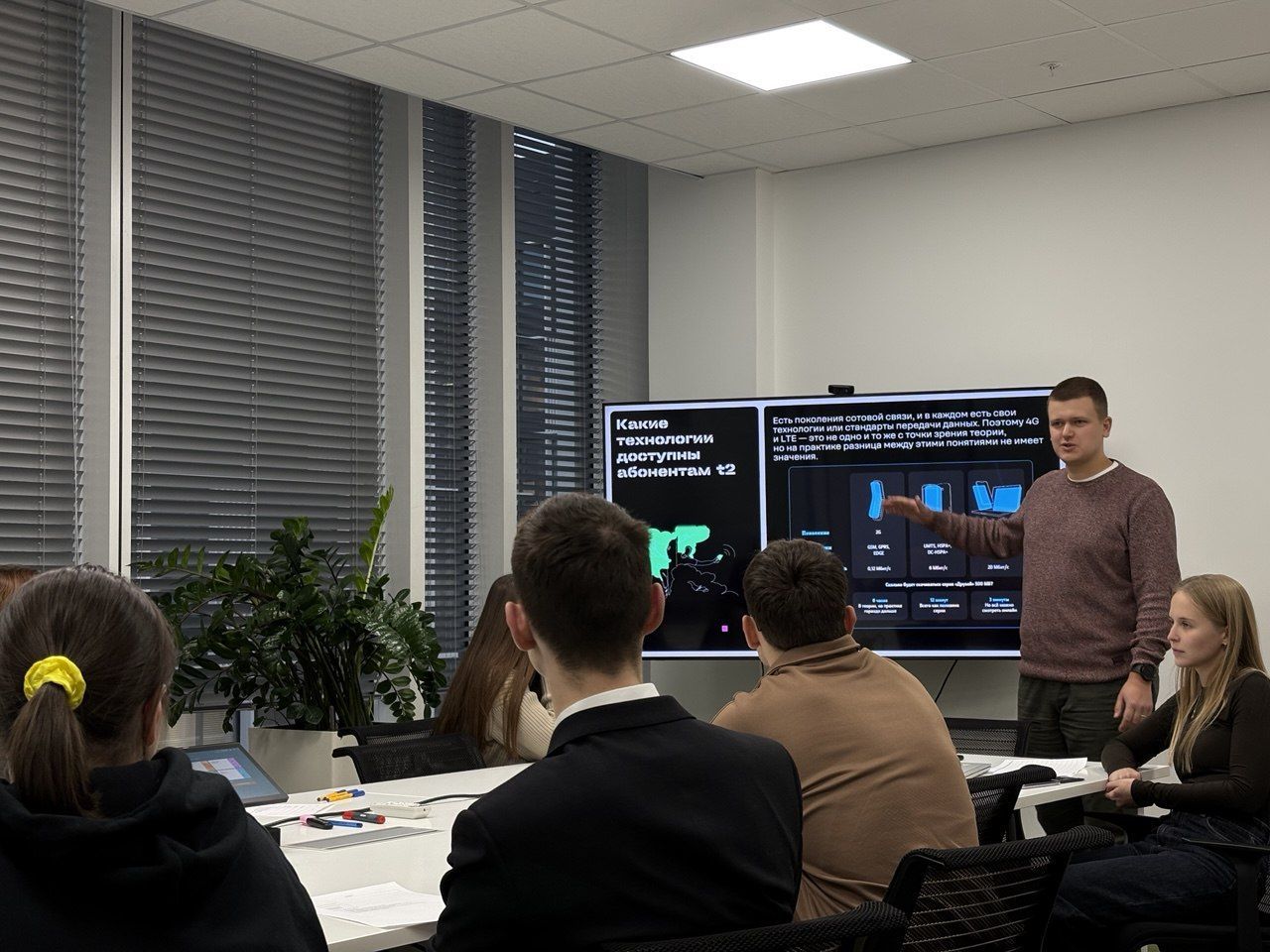 Руководители подразделений поделились своим профессиональным путём, подробно рассказали о структуре компании и ключевых направлениях работы. Отдельное внимание было уделено возможностям для старта карьеры: студентам объяснили, как устроены стажировки в «Т2», с какими задачами сталкиваются стажёры и какие перспективы их ждут.