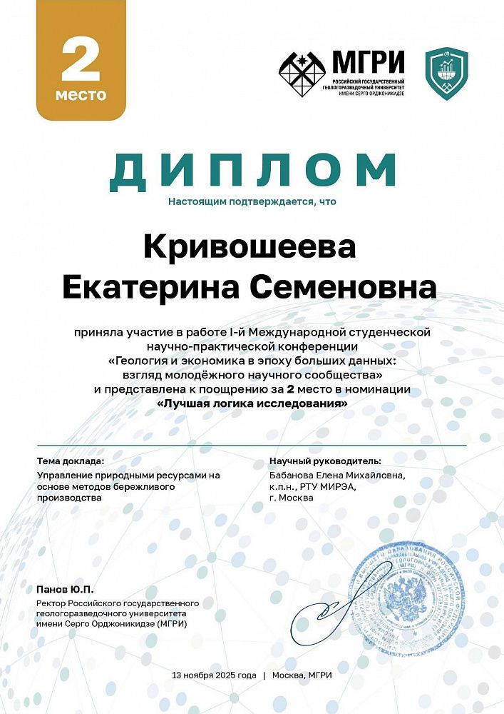 Конференция была направлена на объединение молодых исследователей и представление научных разработок на стыке геологии, экономики, цифровых технологий и менеджмента. В центре внимания участников оказались вопросы применения методов анализа больших данных для повышения эффективности геологоразведочных процессов, управления природными ресурсами и формирования устойчивого экономического развития.