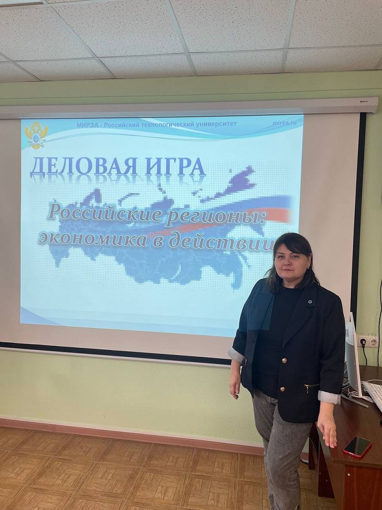 В Институте технологий управления состоялось яркое учебное событие — деловая игра «Российские регионы: экономика в действии». Инициаторами и организаторами мероприятия выступили доценты кафедры экономики Григоренко Ольга Викторовна и Фролов Александр Львович.