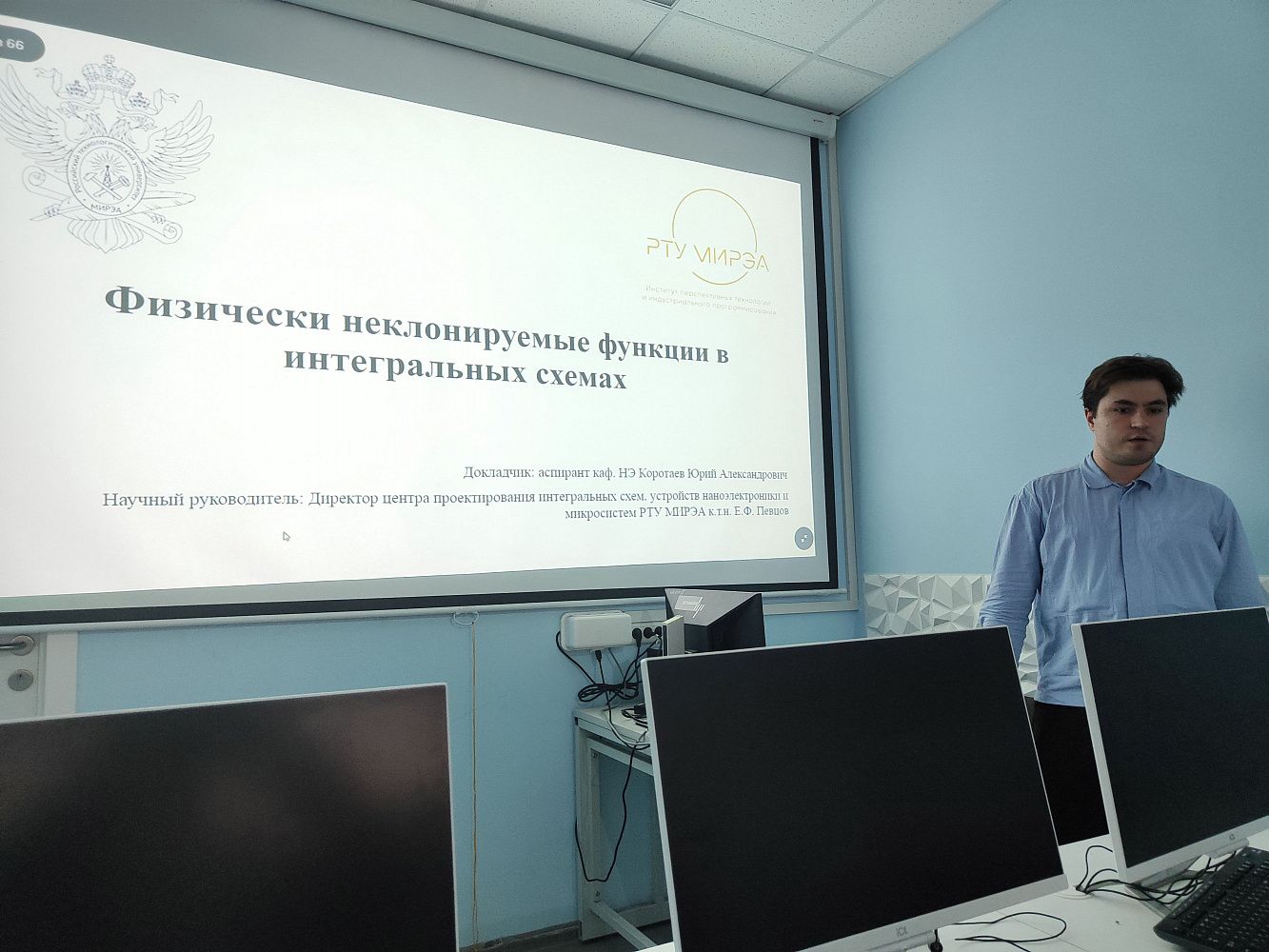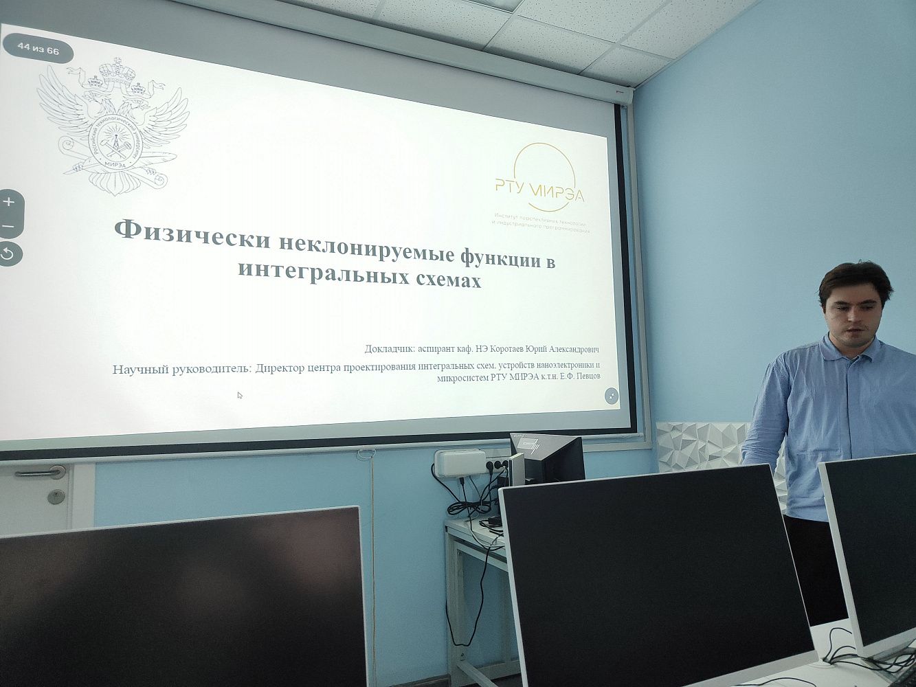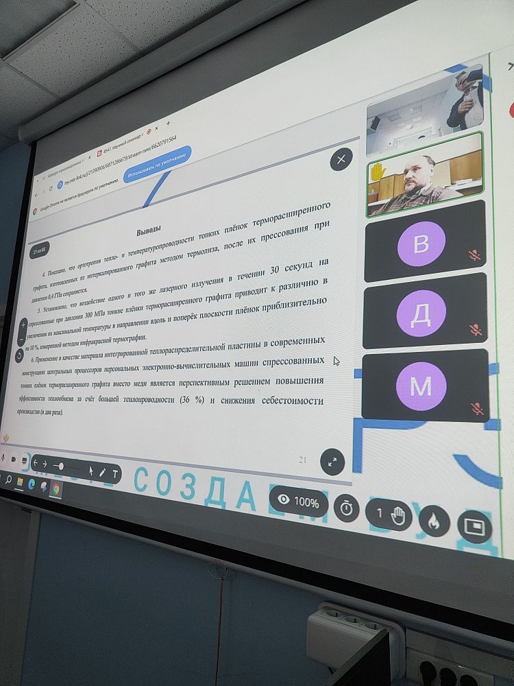 На кафедре наноэлектроники Института перспективных технологий и индустриального программирования прошло заседание научного семинара «Физика конденсированного состояния» (ФКС) в смешанном (очном и онлайн) формате под руководством академика РАН, президента РТУ МИРЭА А.С. Сигова и профессора кафедры наноэлектроники А.Н. Юрасова.