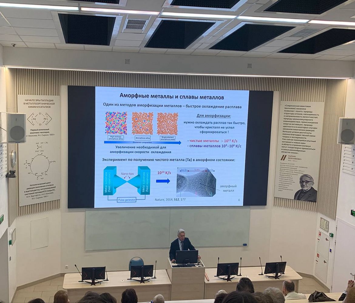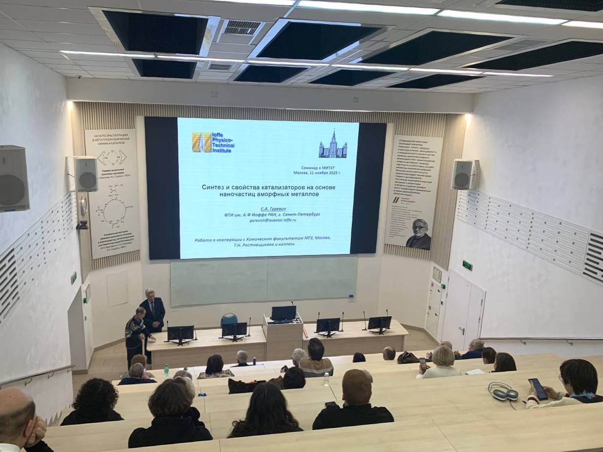 11 ноября в ИТХТ имени М.В. Ломоносова состоялся семинар «Школы катализа», в рамках которого с докладом на тему «Синтез и свойства катализаторов на основе наночастиц аморфных металлов» выступил доктор физико-математических наук, главный научный сотрудник ФТИ имени А.Ф. Иоффе РАН, заведующий лабораторией (1991-2025 гг.) Сергей Александрович Гуревич.