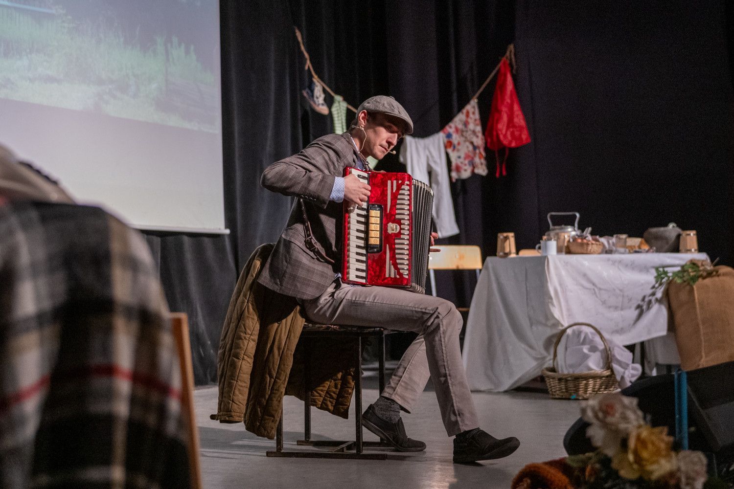 Образ Василия Кузякина в исполнении Романа Чернышова органично сочетал доброту, свет, юмор, глубокую внутреннюю растерянность и, конечно же, любовь. Надя Кузякина, которую сыграла Мария Лойко, вызвала у зала искренние эмоции — смех и слёзы. Её удивительный говор, импровизация, движения, наряды придавали неповторимый шарм разворачивающемуся действию. А вот образ бабы Шуры, воплощённый Артёмом Филимоновым, стал настоящим открытием вечера: актёр смог передать и женский характер, и мудрость, и неповторимый юмор. Ещё один герой пьесы — дядя Митя, супруг бабы Шуры — в исполнении Анатолия Маркина предстал в этом спектакле с удивительной естественностью. Его харизма старого моряка, балагура и вечного мальчишки была той самой по-деревенски тёплой, немного грубоватой, но искренней и живой, что делало его не просто персонажем, а настоящим человеком, с которым можно было и посмеяться, и поплакать.