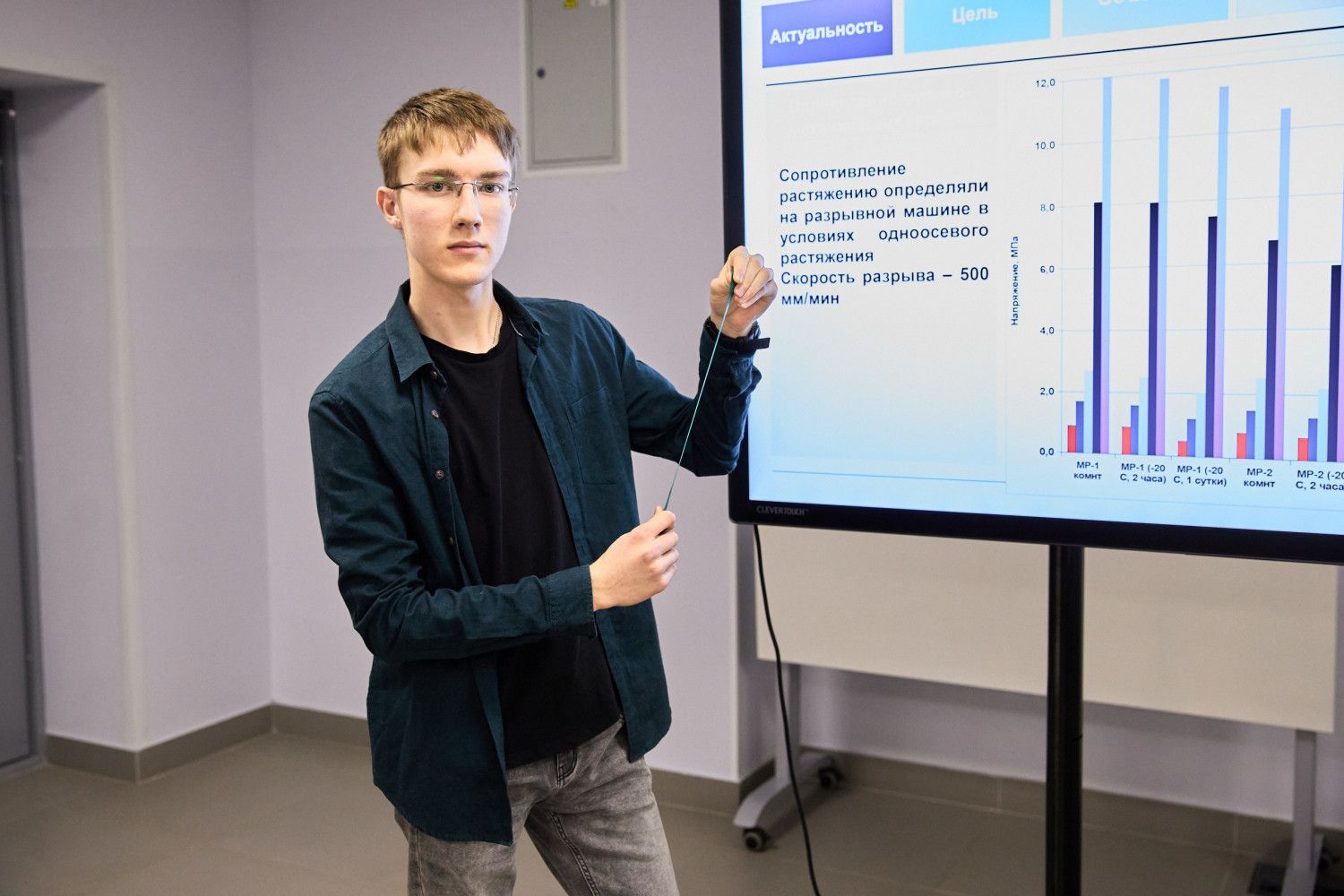 В Детском технопарке «Альтаир» РТУ МИРЭА Михаил занимался на курсе «Эластомир: настоящее и будущее», где изучил свойства различных материалов. Именно здесь, в современной лаборатории кластера «Биомедицинские и химические технологии», он создал жгут на основе отечественных ингредиентов, которые обеспечивают высокую морозостойкость и долговечность. Этот материал не только устойчив к низким температурам, но и обладает улучшенными эксплуатационными характеристиками: эластичностью, износостойкостью, прочностью и другими.